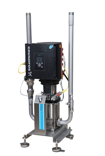 MainstationsWall-mounted cleaning station with a built-in pump to supply itself and connected satellites with pressurized water.