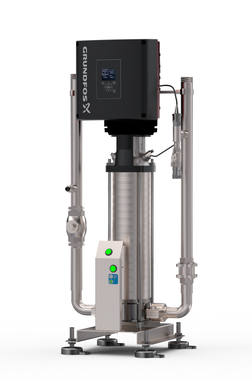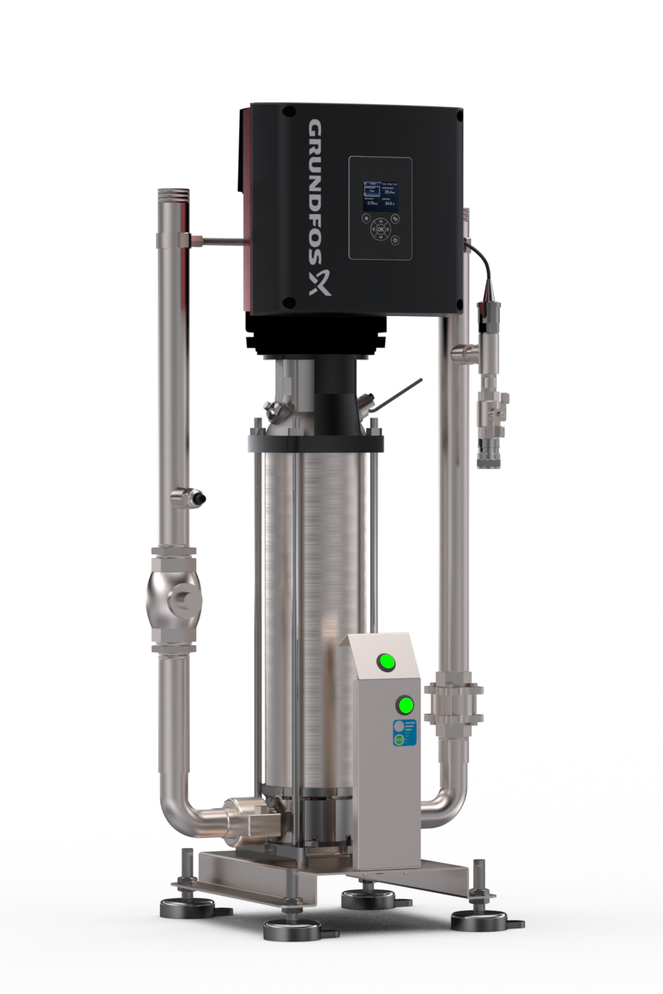Dynamic Outlet pressureOur booster stations are, in cooperation with Grundfos, optimized for Open Plan Cleaning in the Food & Beverage Industry. The pumps are constantly adapting to the number of users and available inlet pressure. This way we can ensure that our pump all the time will deliver at the hight possible efficiency. -