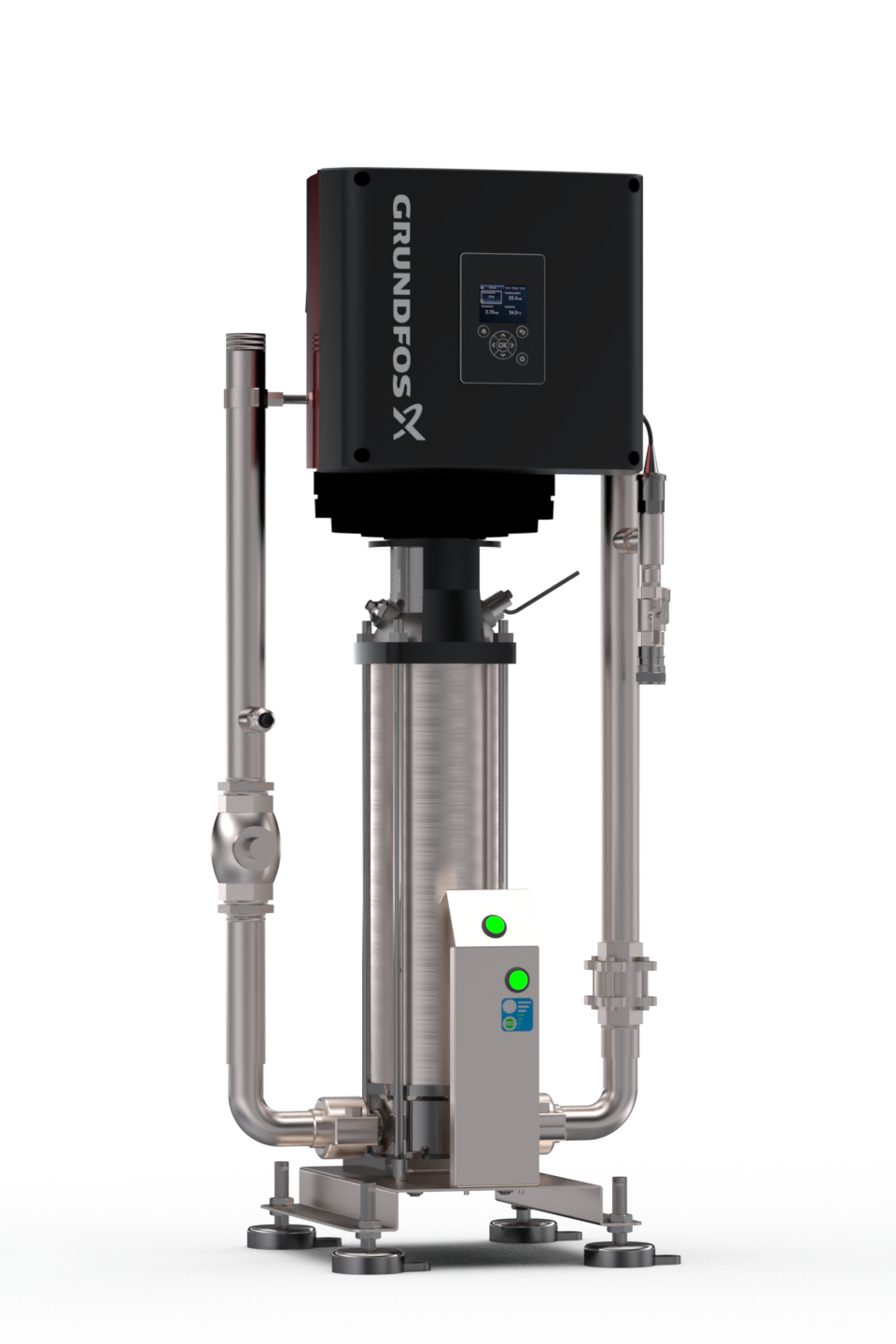 Dynamic Outlet pressureOur booster stations are, in cooperation with Grundfos, optimized for Open Plan Cleaning in the Food & Beverage Industry. The pumps are constantly adapting to the number of users and available inlet pressure. This way we can ensure that our pump all the time will deliver at the hight possible efficiency. -