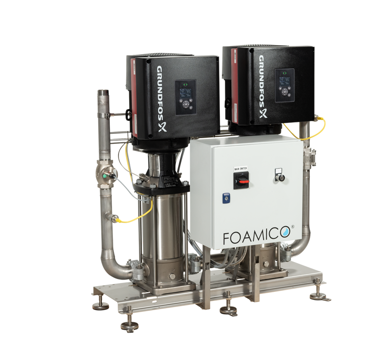 Dynamic Outlet pressureOur booster stations are, in cooperation with Grundfos, optimized for Open Plan Cleaning in the Food & Beverage Industry. The pumps are constantly adapting to the number of users and available inlet pressure. This way we can ensure that our pump all the time will deliver at the hight possible efficiency. -