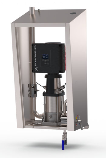 Foamico pre-pressure pump is designed to supply Foamico booster systems with inlet pressure. The pump is frequency controlled, providing you with the latest EI5 motor technology from Grundfos. It is programmed to increase the inlet water pressure up to 3 bar. Energy consumption is minimized by controlling the pressure through the build-in PI regulator. B 1080-3F F starts and stops by pressure.