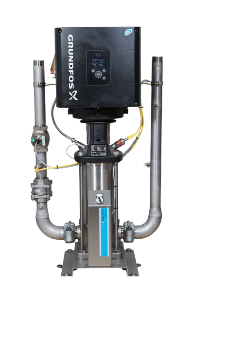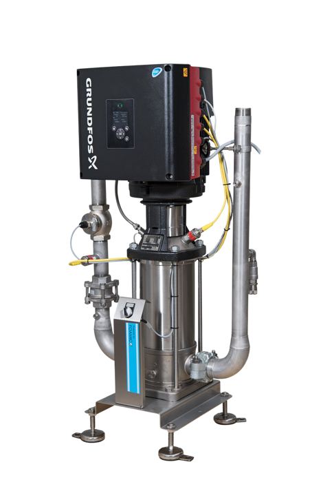 Dynamic Outlet pressureOur booster stations are, in cooperation with Grundfos, optimized for Open Plan Cleaning in the Food & Beverage Industry. The pumps are constantly adapting to the number of users and available inlet pressure. This way we can ensure that our pump all the time will deliver at the hight possible efficiency. -