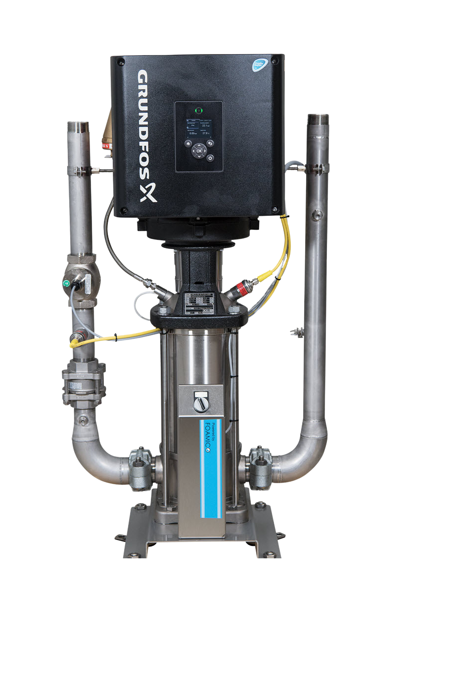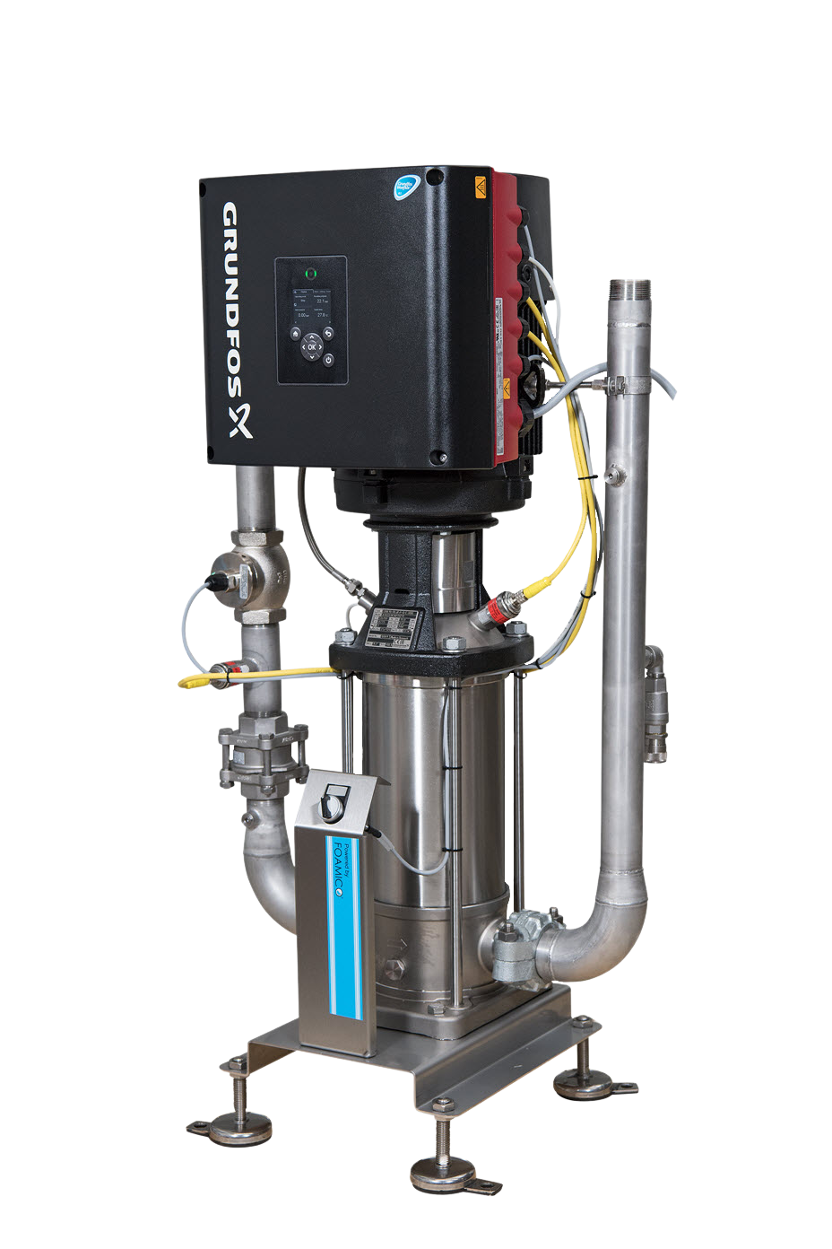 Dynamic Outlet pressureOur booster stations are, in cooperation with Grundfos, optimized for Open Plan Cleaning in the Food & Beverage Industry. The pumps are constantly adapting to the number of users and available inlet pressure. This way we can ensure that our pump all the time will deliver at the hight possible efficiency. -