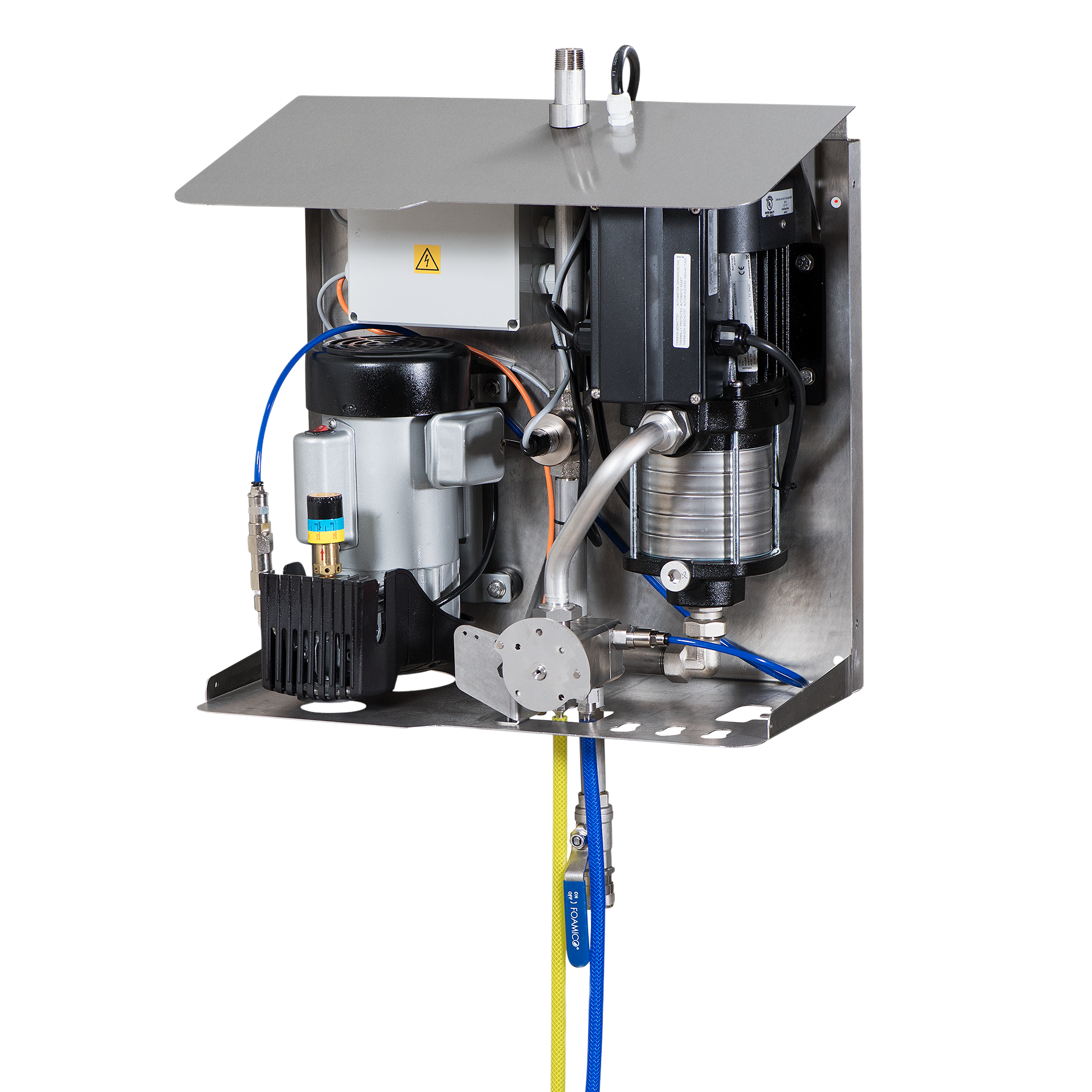 The ULTRA NEXT stations "MS ULTRA 0106" and" MSC ULTRA 0106 is for a single user only and includes a compressor for including compressed air for foam. The mainstation is controlled by a physical flow switch located on the front of the unit. When the change-over handle is placed in the rinse or the foam position, the pump is automatically on standby. And it starts only if the gun or the low-pressure valve is opened. It is extremely easy to use as it has no physical start/stop switch, and it has no handle to toggle the air on and off. Finally, it does not have a separate start/stop switch for the compressor. Functions are kept simple to make it easy and safe for the operator to use.