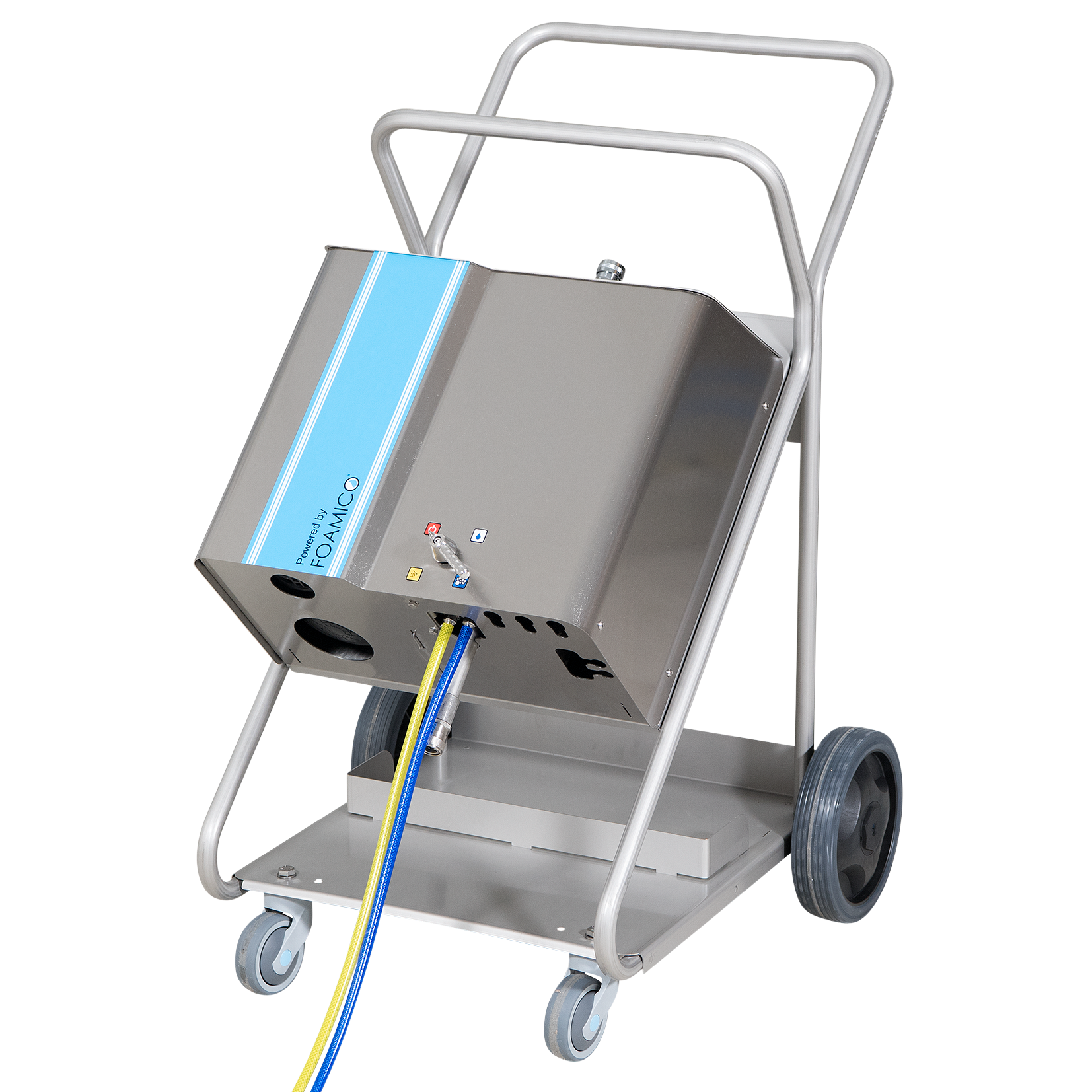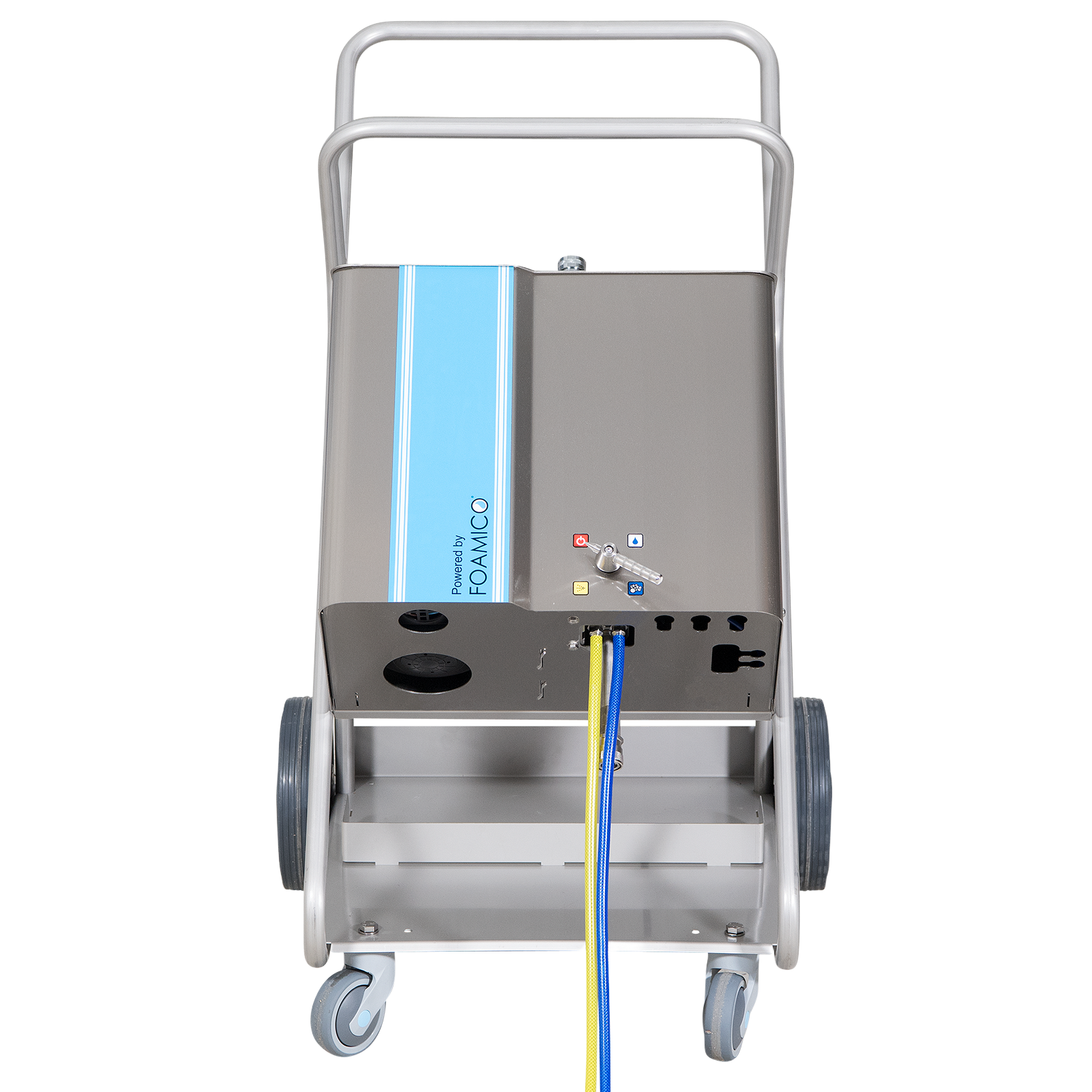 The ULTRA NEXT stations "MS ULTRA 0106", " MSC ULTRA 0106 & MS 0106 XA monuted on a trolley, is for a single user only and includes a compressor for including compressed air for foam. The mainstation is controlled by a physical flow switch located on the front of the unit. When the change-over handle is placed in the rinse or the foam position, the pump is automatically on standby. And it starts only if the gun or the low-pressure valve is opened. It is extremely easy to use as it has no physical start/stop switch, and it has no handle to toggle the air on and off. Finally, it does not have a separate start/stop switch for the compressor. Functions are kept simple to make it easy and safe for the operator to use.