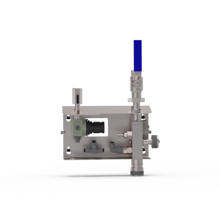 The Satellite is designed with an easily maintainable manual change-over block. The change-over function is operated by a stainless-steel handle on the side of the unit.